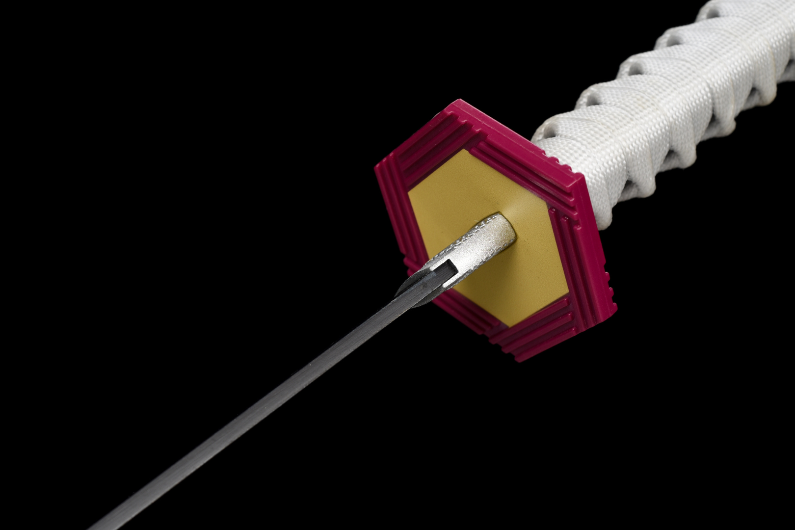 Handle (Tsuka 柄) White cord wrapping over wood, providing strong grip and elegance