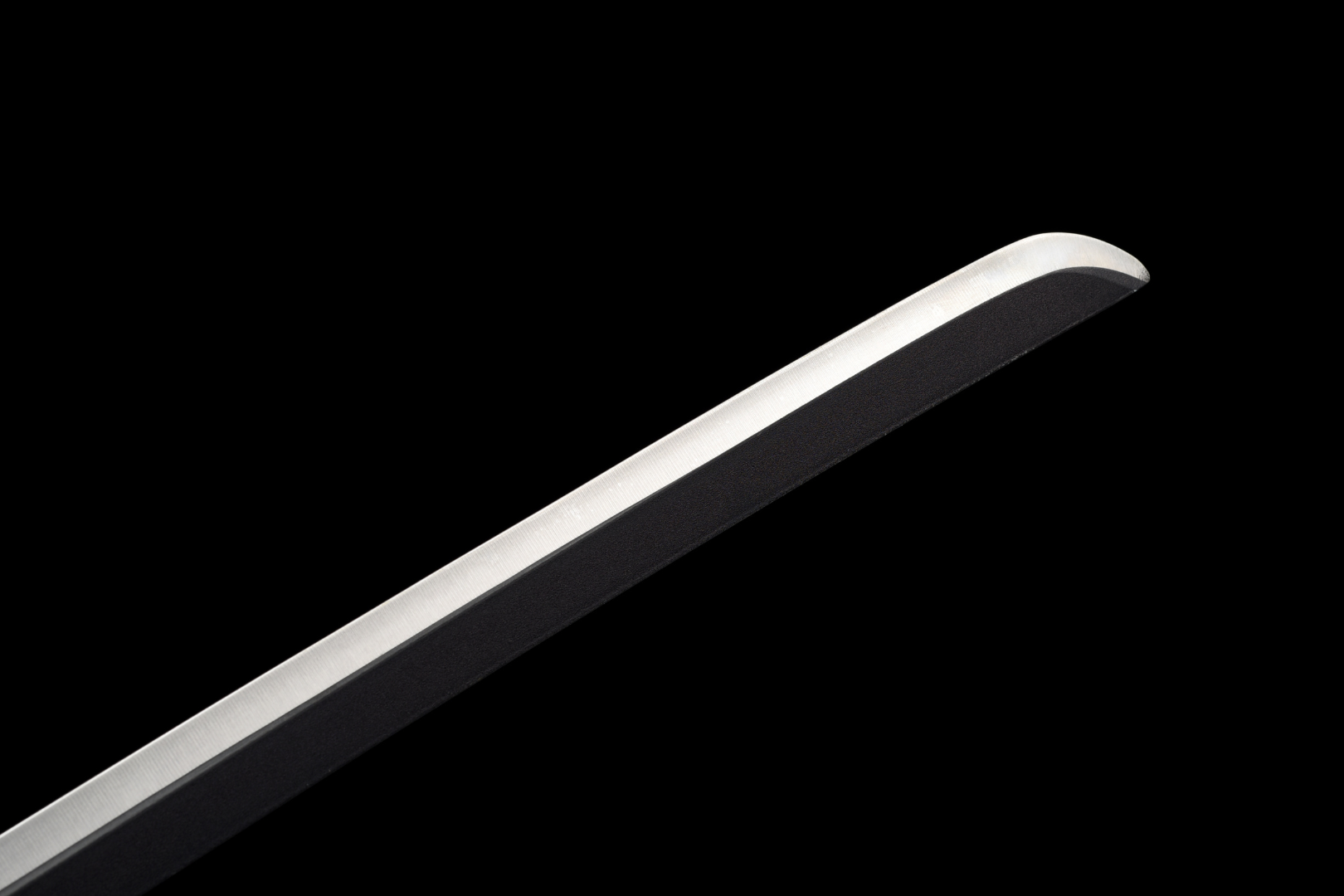 Blade (Kissaki 刃) 1060 carbon steel, black and silver finish with engraved kanji