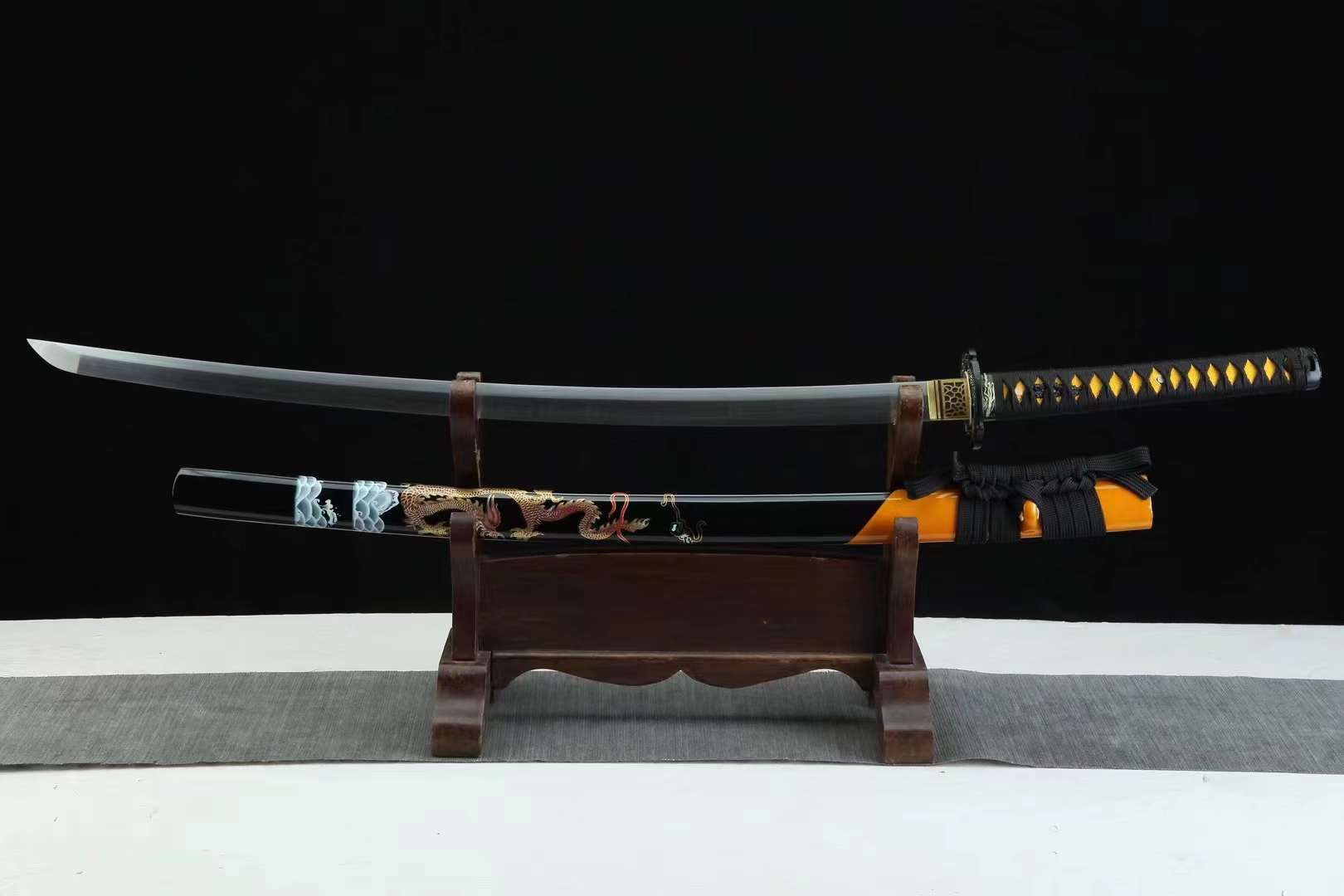 | Scabbard (Saya 鞘) | Glossy black saya with golden dragon relief, detailed with cloud and flame patterns |