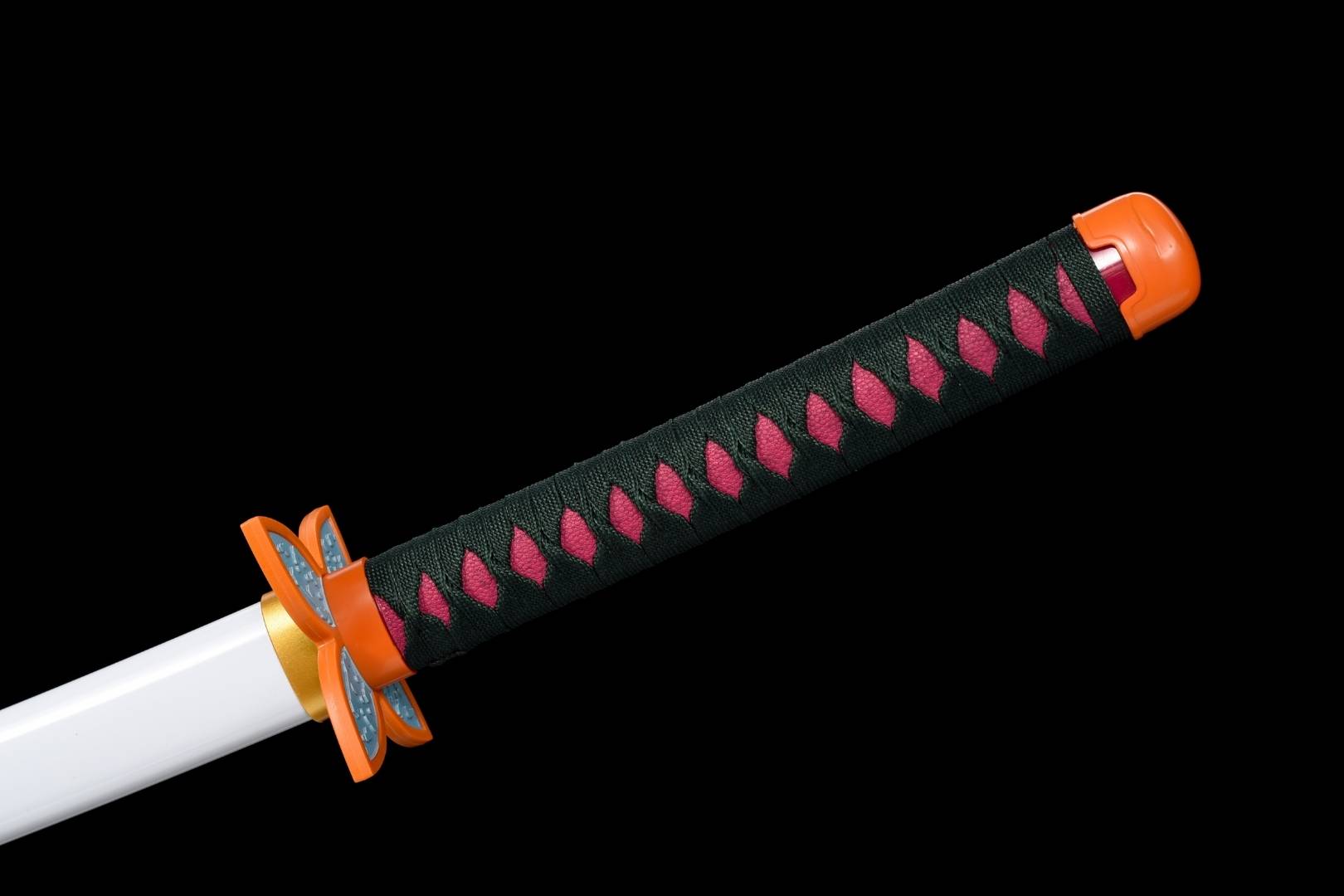Guard (Tsuba 鍔) — Sculpted iron in vivid orange; balances the blade and protects the hand.