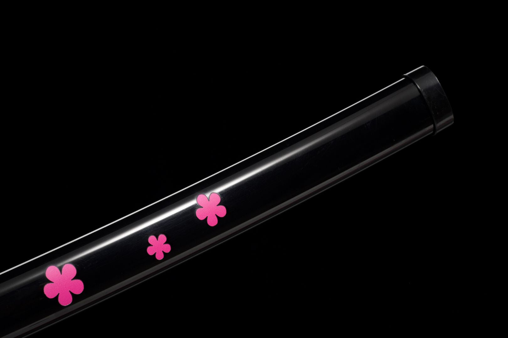 Scabbard (Saya 鞘) — Black lacquered saya decorated with delicate cherry blossoms for a refined, feminine look.