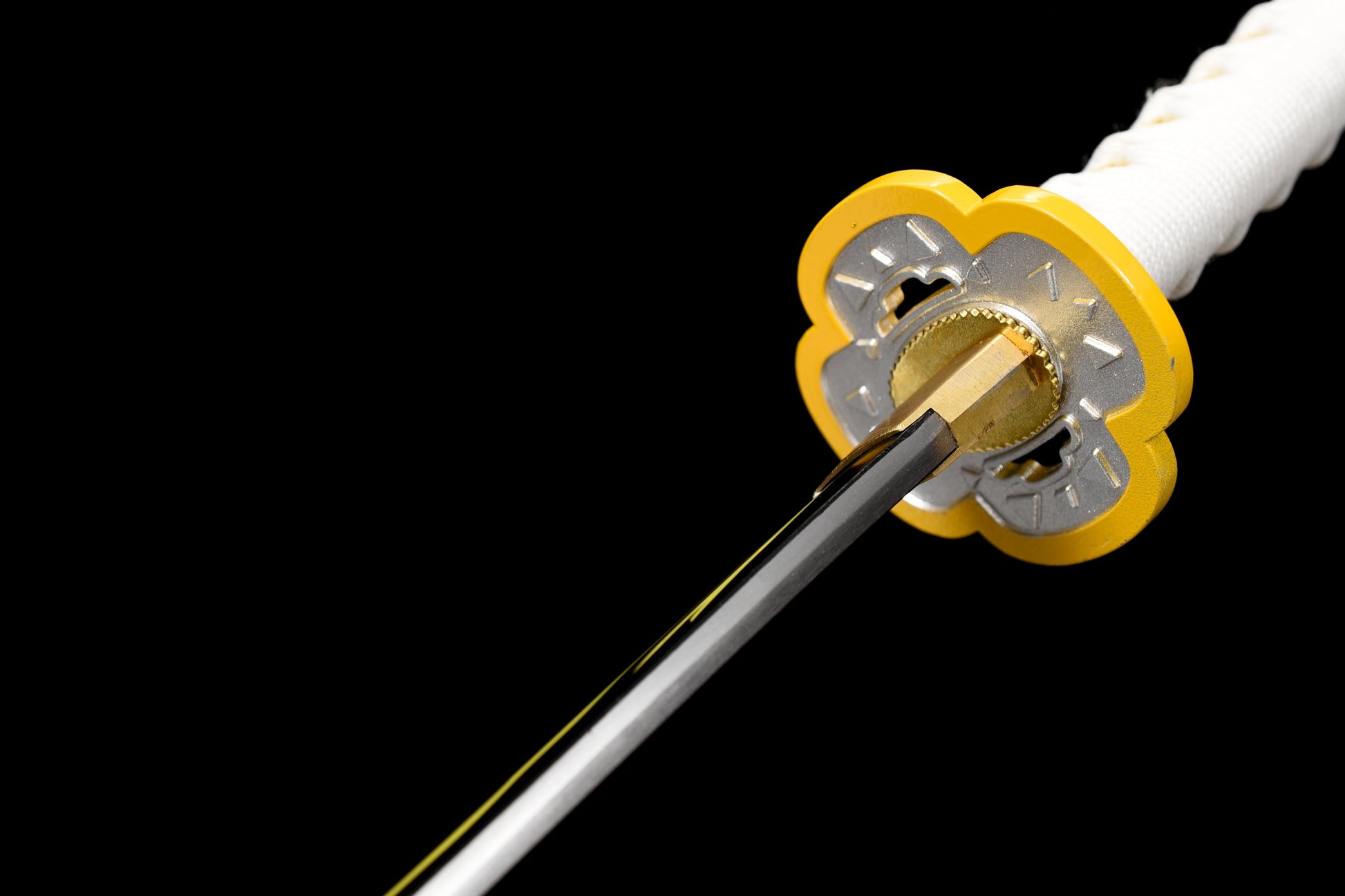 Inspired by the manga and anime Demon Slayer (Kimetsu no Yaiba), this replica of Zenitsu Agatsuma's katana is a must-have for collectors and fans of the series. Zenitsu is one of Demon Slayer's protagonists, renowned for his mastery of Lightning Breathing and his fearful yet courageous personality.