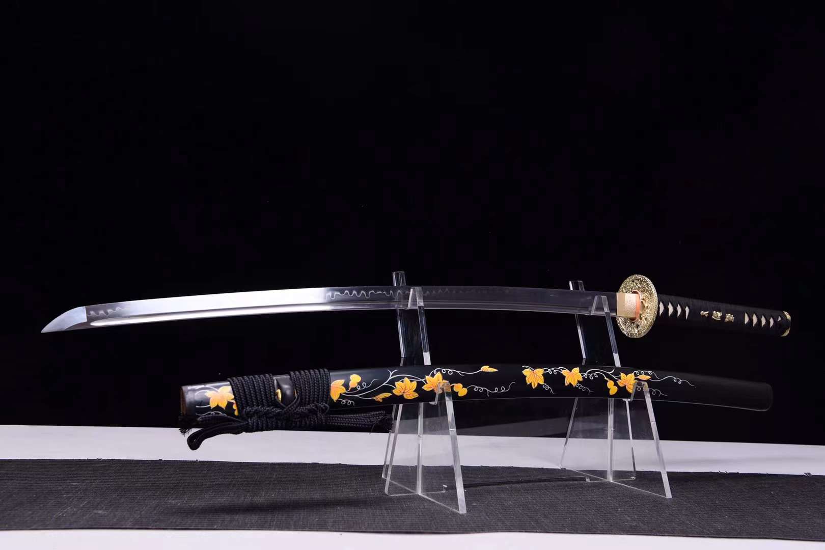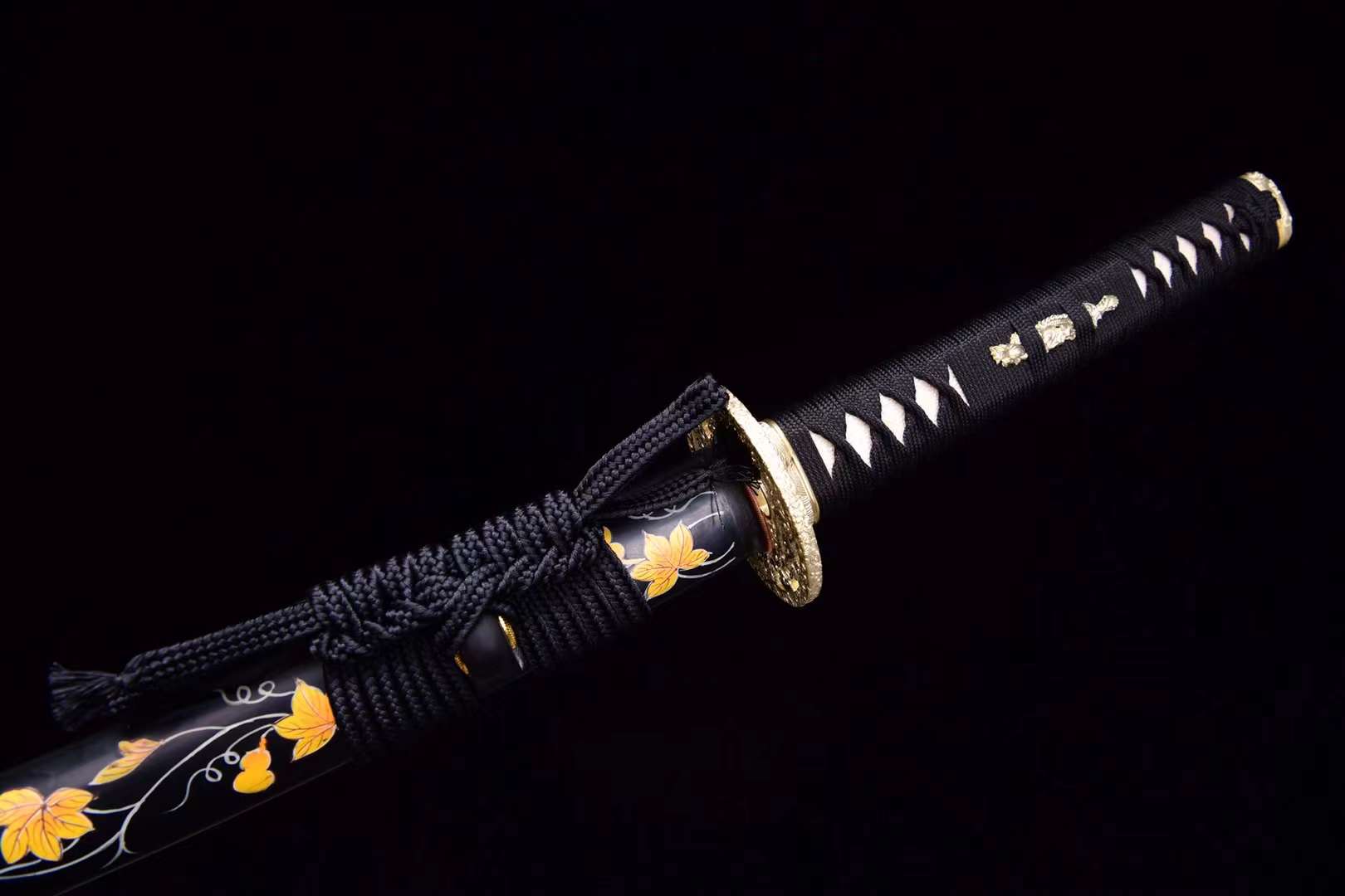 | Scabbard (Saya 鞘) | Black lacquered saya hand-painted with golden maple leaves and delicate vine details |