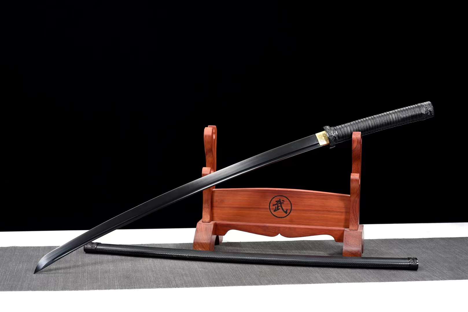 Guard: Blackened iron tsuba with crisp relief work—sturdy protection and a subtle, premium accent.